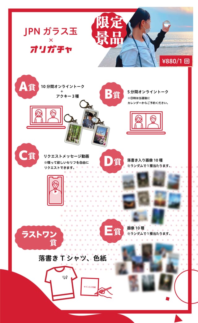10分間オンラインでお話しでき、限定のアクキー3種をプレゼントします!