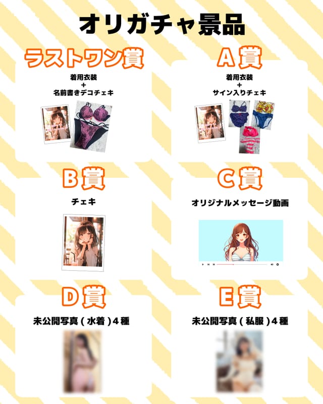 4種類のコスプレ写真うち1種が当たります。