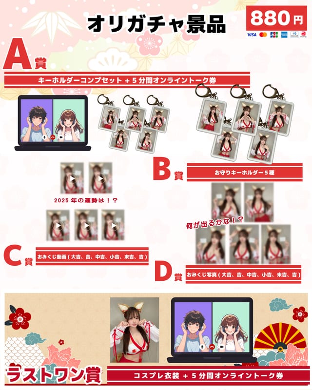 最後の景品の当選者に追加でラストワン賞をプレゼントします! 5分間のオンライントーク券と着用衣装を用意しています!