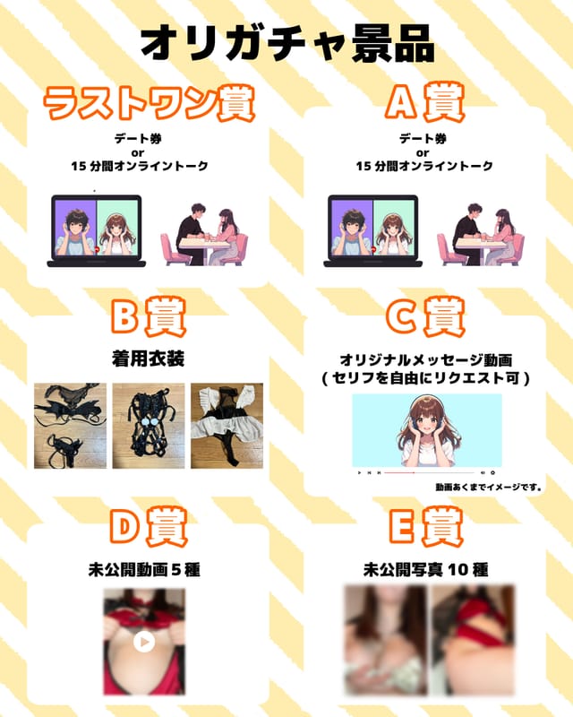 最後の景品の当選者に追加でラストワン賞をプレゼントします! 希望の景品を記入してください。詳細はLINEで連絡します。必ずLINE連携をしてください。