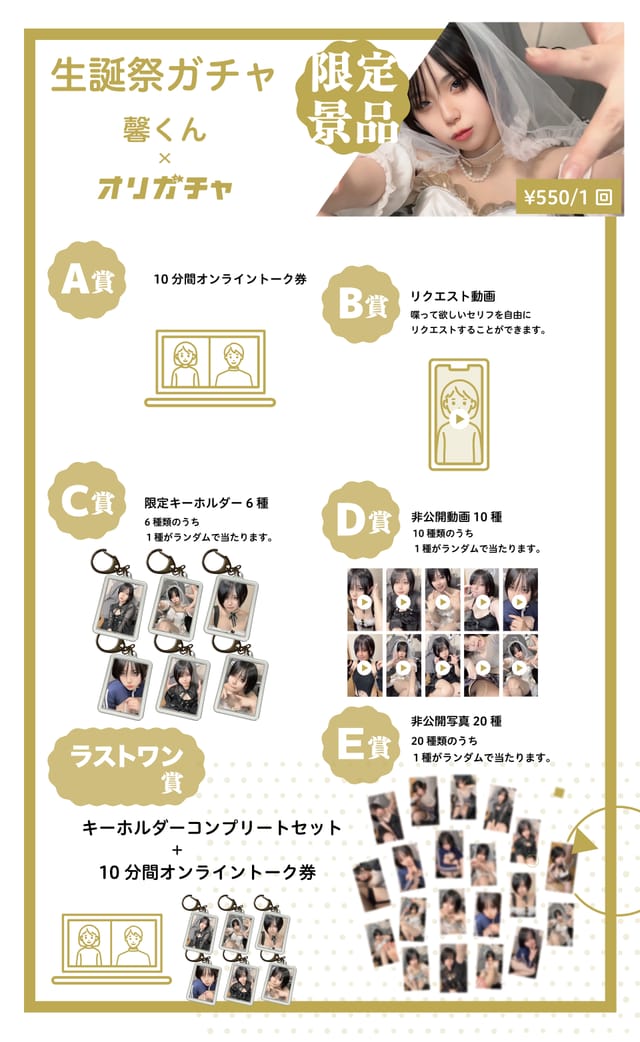 非公開写真を20種用意しており、1種類が当たります。
