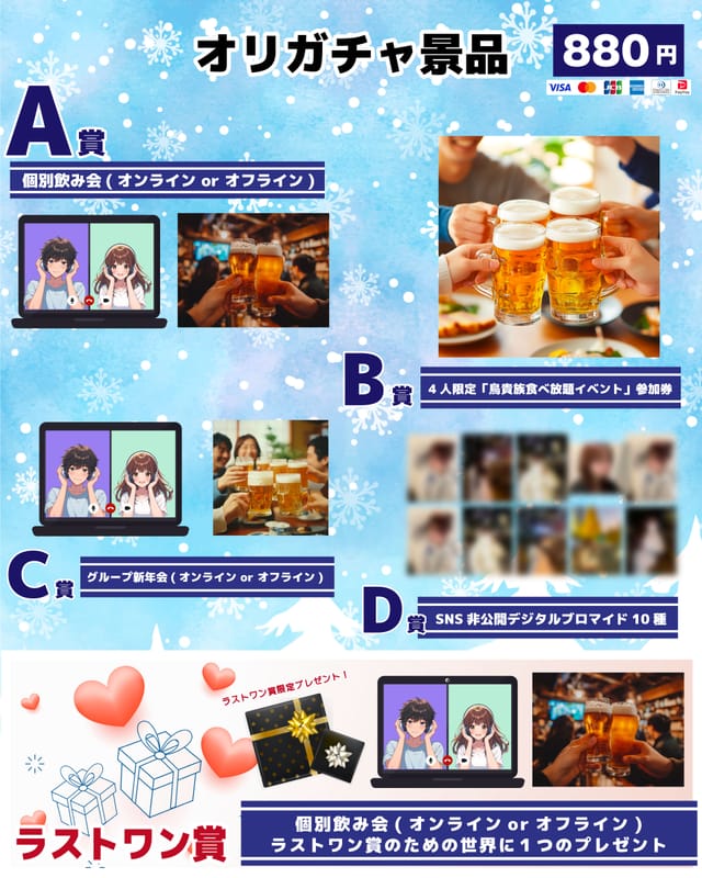 個別飲み会(オンラインorオフライン) & ラストワン賞のための世界に1つのプレゼント