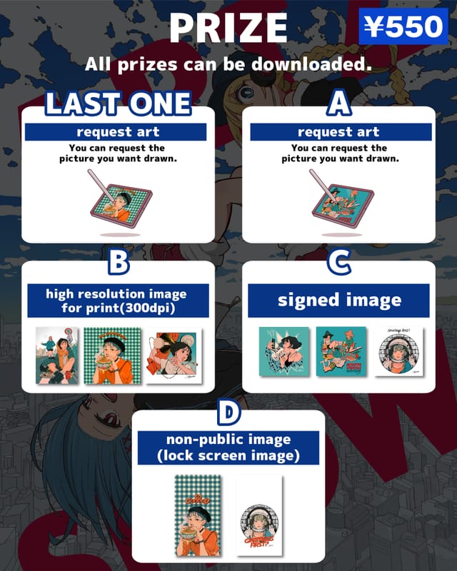 An additional last one prize will be given to the winner of the final prize. You can request the picture you want drawn.