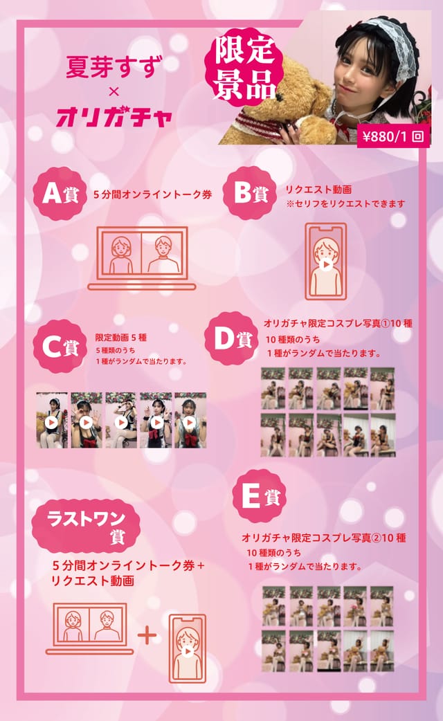 5種類の動画のうち1種が当たります!
